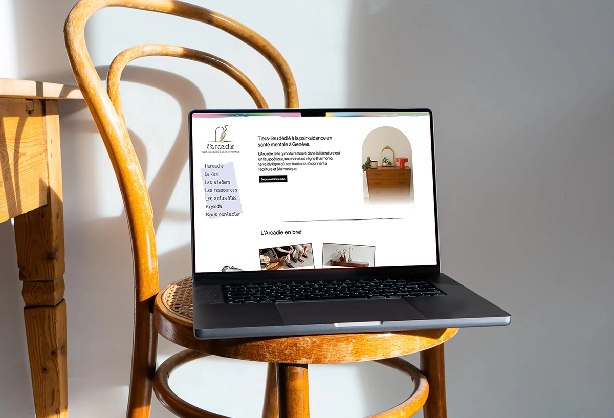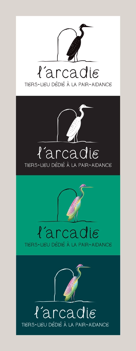 Identité visuelle et supports de com (web, print) de l'Arcadie, tiers-lieu dédié à la pair-aidance