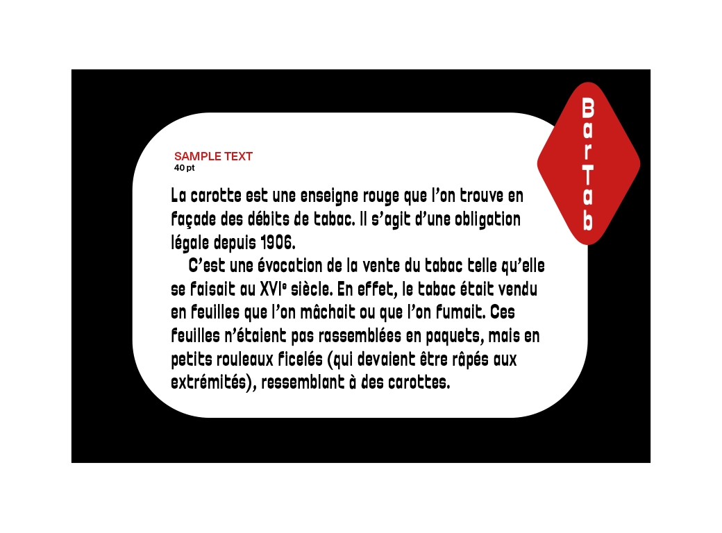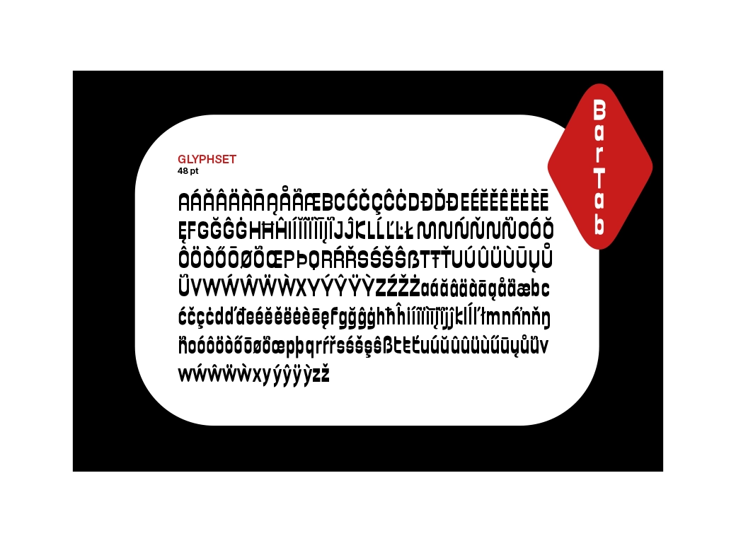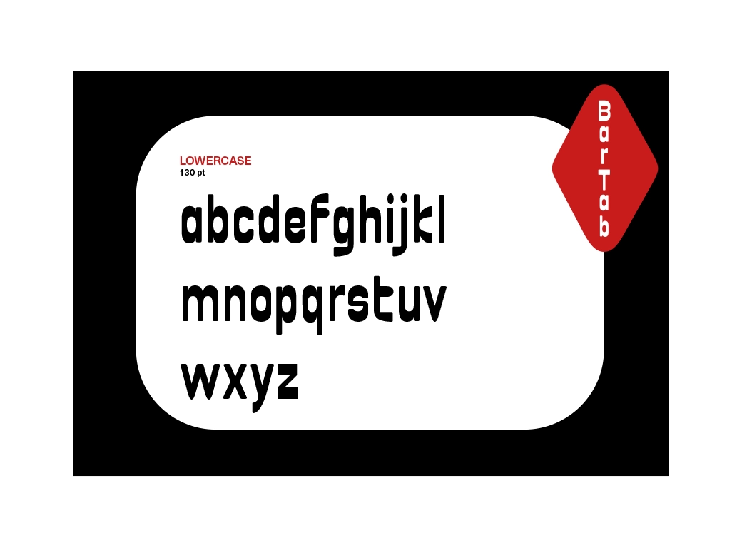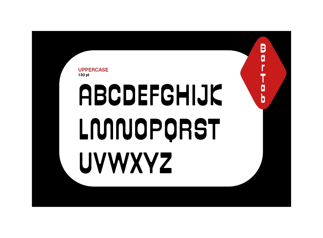 BarTab est une police plutôt ronde et robuste avec des contrastes inversés.